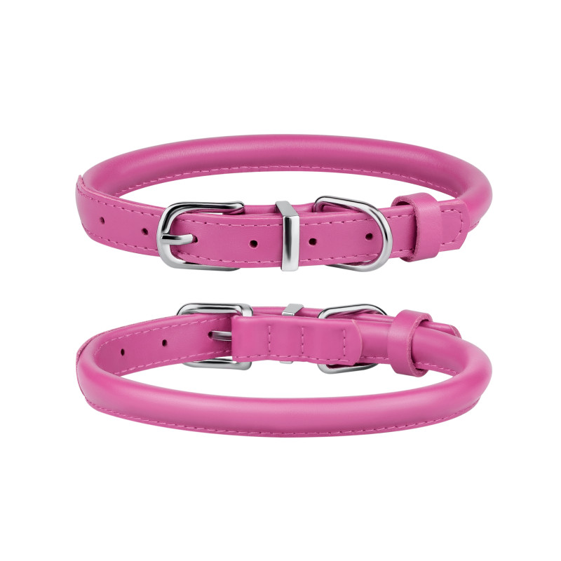 Нашийник для собак BronzeDog круглий шкіряний Рожевий