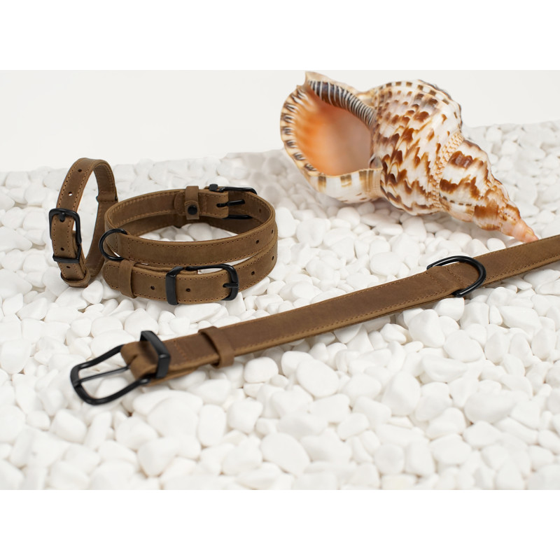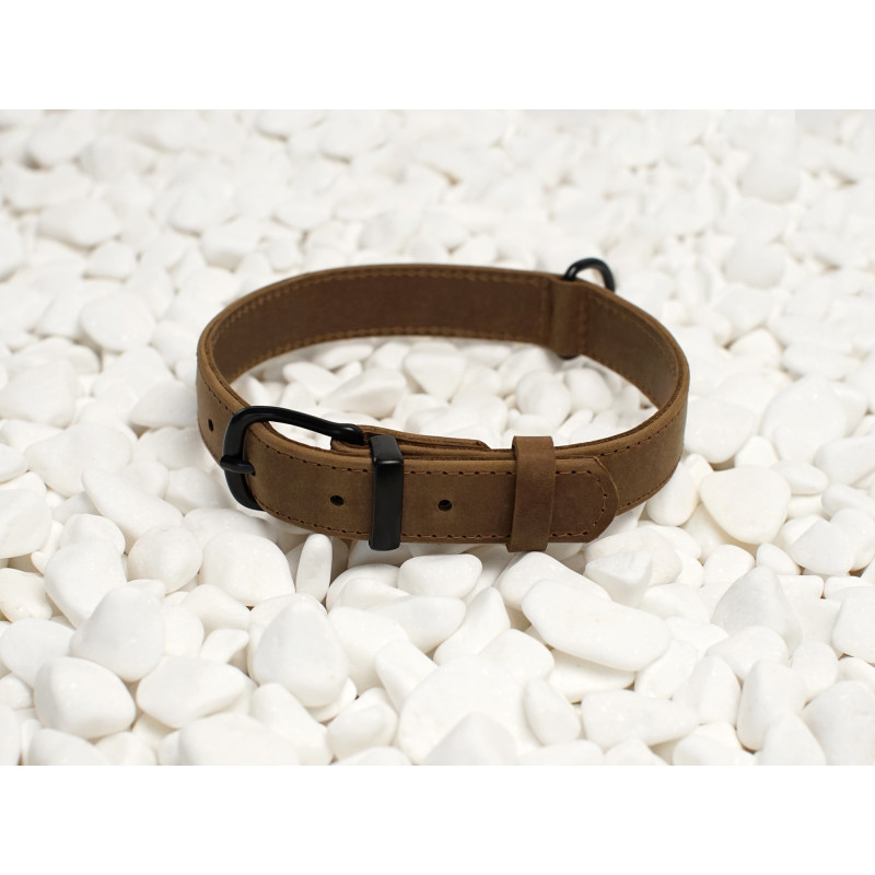 Цей стильний класичний нашийник ручної роботи виготовлений із м'якої натуральної шкіри. Цей нашийник ідеальний зносостійкий та міцний аксесуар з м'якою, гладенькою текстурою. Вони не розтягуються та не облущуються, не тягнуть за шерсть й не натирають шию. Поєднання високоякісної шкіри та міцної металевої фурнітури – запорука тривалої служби нашийника. Його можна використовувати як вдома, так і на вулиці під час прогулянок. Металеве напівкільце служить надійним кріпленням для повідця. Підходить для будь-яких пород собак.