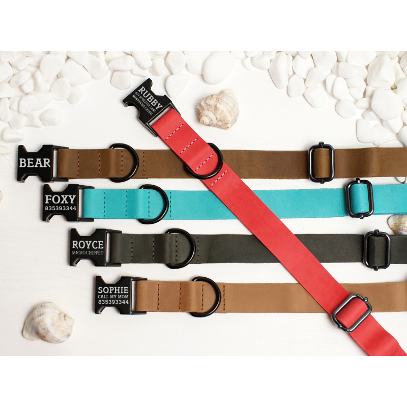 Цей стильний класичний нашийник ручної роботи виготовлений із м'якої натуральної шкіри. Цей нашийник ідеальний зносостійкий та міцний аксесуар з м'якою, гладенькою текстурою. Вони не розтягуються та не облущуються, не тягнуть за шерсть й не натирають шию. Поєднання високоякісної шкіри та міцної металевої фурнітури – запорука тривалої служби нашийника. Його можна використовувати як вдома, так і на вулиці під час прогулянок. Металеве напівкільце служить надійним кріпленням для повідця. Підходить для будь-яких пород собак.