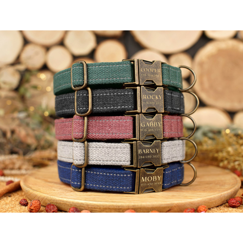 Світловідбиваючий нашийник для собак Bronzedog Cotton дуже міцний, надійний та безпечний. Виготовлений з натурального матеріалу бавовняної сировини найвищої якості, що робить його м'яким і приємним на дотик. Високоміцна бавовняна стрічка не втрачає колір при пранні і не вигоряє на сонці. Він ідеально підходить для повсякденного використання та прогулянок у парку. Світловідбиваючі елементи допомагають убезпечити ваші прогулянки ввечері та вночі. Такі стрічки додають вашому вихованцю помітності для господаря та водіїв у темний час доби. Нашийник укомплектований міцною металевою пряжкою з можливістю нанесення гравіювання. На пряжці можна награвіювати будь-яку інформацію, наприклад: кличка домашньої тварини, контактні дані, адреса, номер мікрочіпа тощо. Текст наноситься за допомогою лазера, тому з часом він не стирається і не тьмяніє.