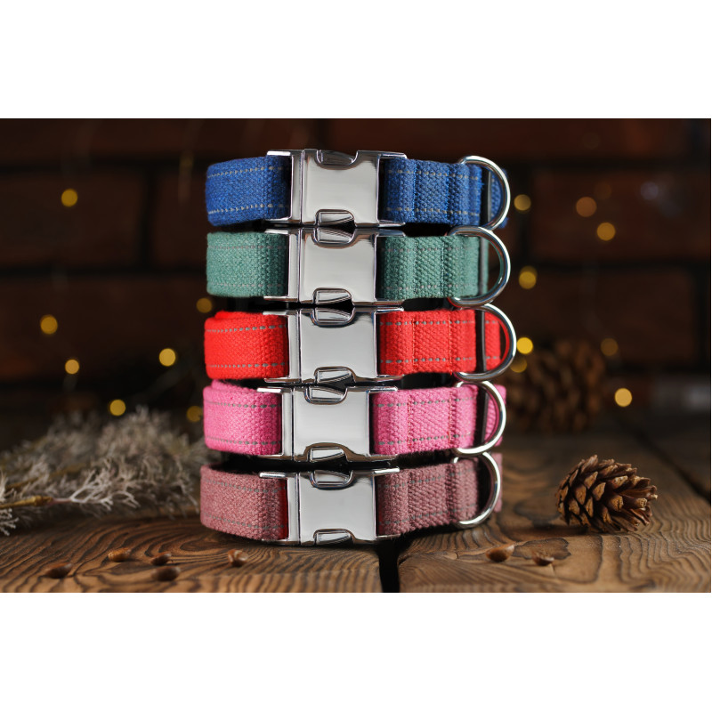 Світловідбиваючий нашийник для собак Bronzedog Cotton дуже міцний, надійний та безпечний. Виготовлений з натурального матеріалу бавовняної сировини найвищої якості, що робить його м'яким і приємним на дотик. Високоміцна бавовняна стрічка не втрачає колір при пранні і не вигоряє на сонці. Він ідеально підходить для повсякденного використання та прогулянок у парку. Світловідбиваючі елементи допомагають убезпечити ваші прогулянки ввечері та вночі. Такі стрічки додають вашому вихованцю помітності для господаря та водіїв у темний час доби. Нашийник укомплектований міцною металевою пряжкою з можливістю нанесення гравіювання. На пряжці можна награвіювати будь-яку інформацію, наприклад: кличка домашньої тварини, контактні дані, адреса, номер мікрочіпа тощо. Текст наноситься за допомогою лазера, тому з часом він не стирається і не тьмяніє.