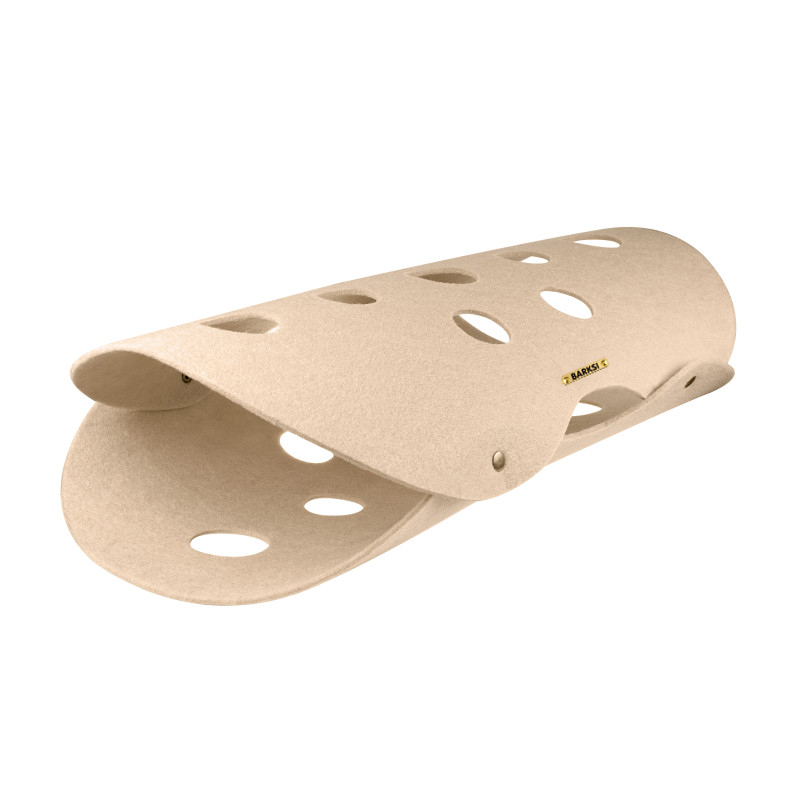 Це місце використовується для активної гри для котів та дрібних порід собак. Виготовлено з високоякісної повсті. Збирається за допомогою чотирьох кнопок утворюючи тим самим тунель, який викликаючи інтерес у домашніх вихованців. Залучає їх до активних ігор як усередині виробу, так і зовні. У комплектацію виробу подушка не входить, але за бажанням господарів якщо ваш вихованець полюбить лежати всередині тунелю, можна розташувати подушку. Простий сучасний дизайн тунелю відмінно виглядатиме в будь-якому інтер'єрі. Вироби доступні в одному розмірі та у двох кольорах: бежевий та сірий.