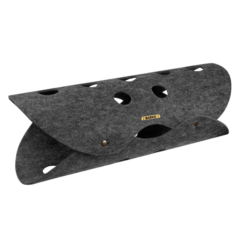 Це місце використовується для активної гри для котів та дрібних порід собак. Виготовлено з високоякісної повсті. Збирається за допомогою чотирьох кнопок утворюючи тим самим тунель, який викликаючи інтерес у домашніх вихованців. Залучає їх до активних ігор як усередині виробу, так і зовні. У комплектацію виробу подушка не входить, але за бажанням господарів якщо ваш вихованець полюбить лежати всередині тунелю, можна розташувати подушку. Простий сучасний дизайн тунелю чудово виглядатиме в будь-якому інтер'єрі. Вироби доступні в одному розмірі та у двох кольорах: бежевий та сірий.