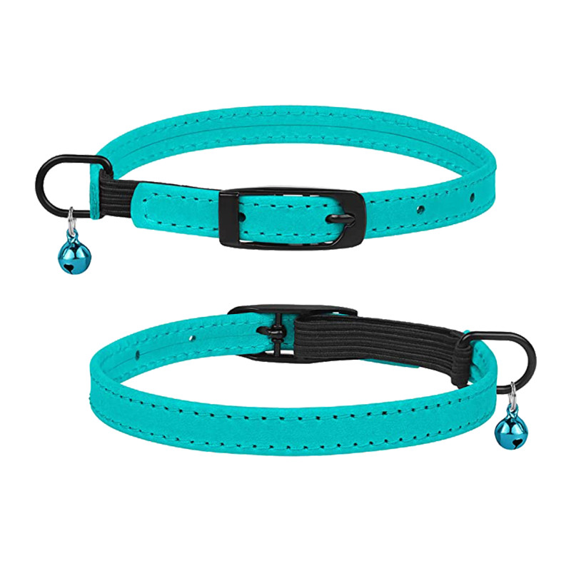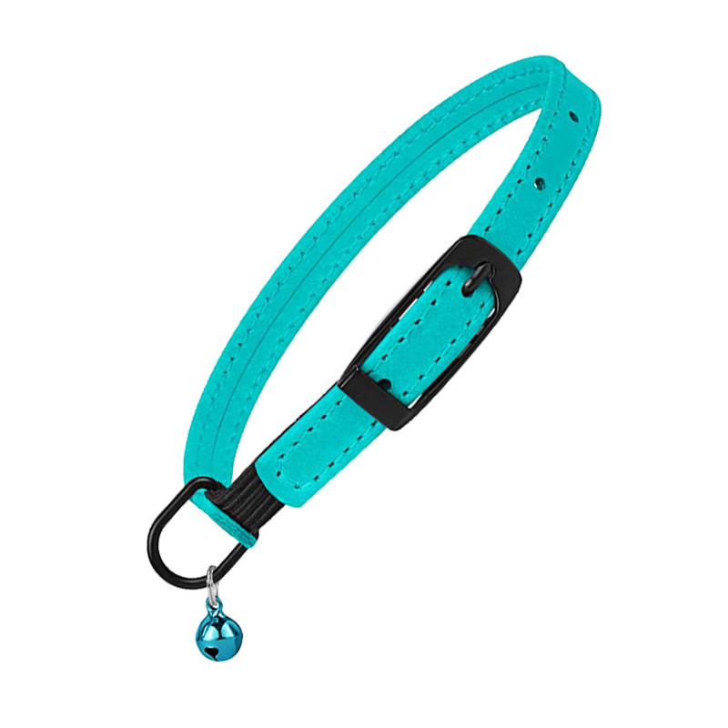 Нашийник для Котів Barksi плоский шкіряний Crazy з блакитним дзвіночком Ментол
