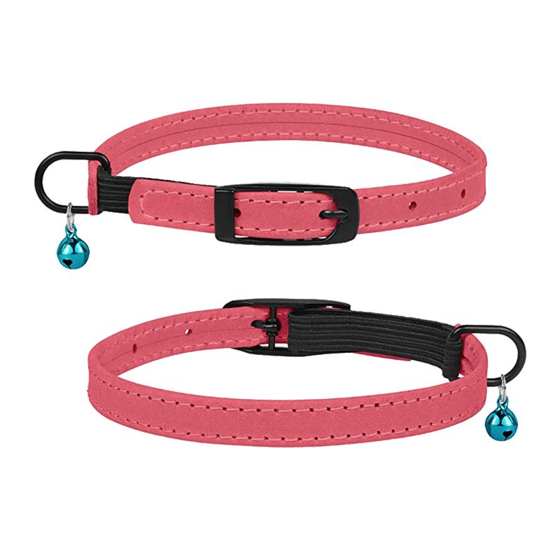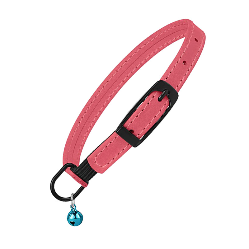 Нашийник для Котів Barksi плоский шкіряний Crazy з блакитним дзвіночком Рожевий