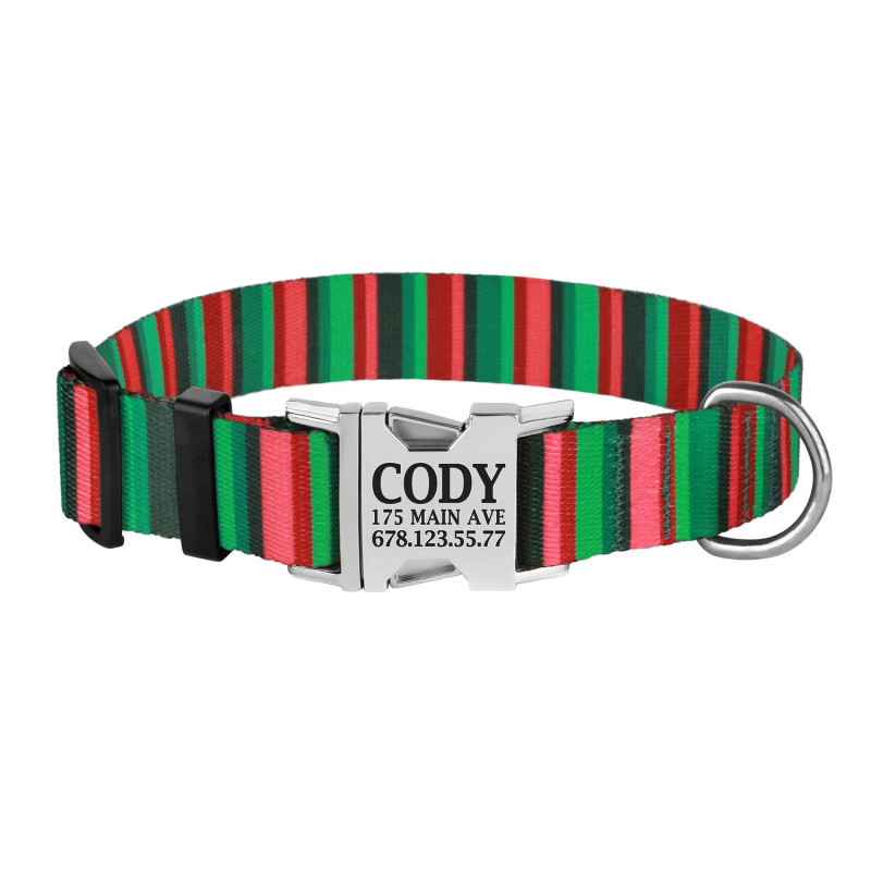 Нашийник для Собак BronzeDog Urban Полоска Нейлоновий з Металевою Пряжкою Червоно-Зелений