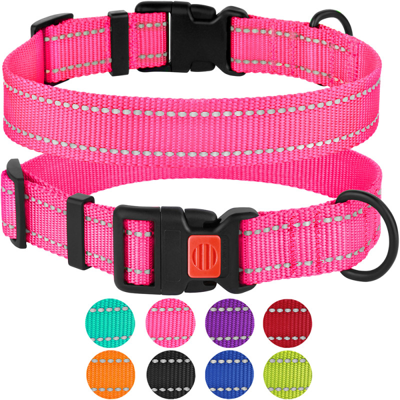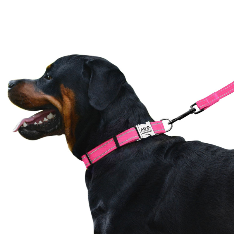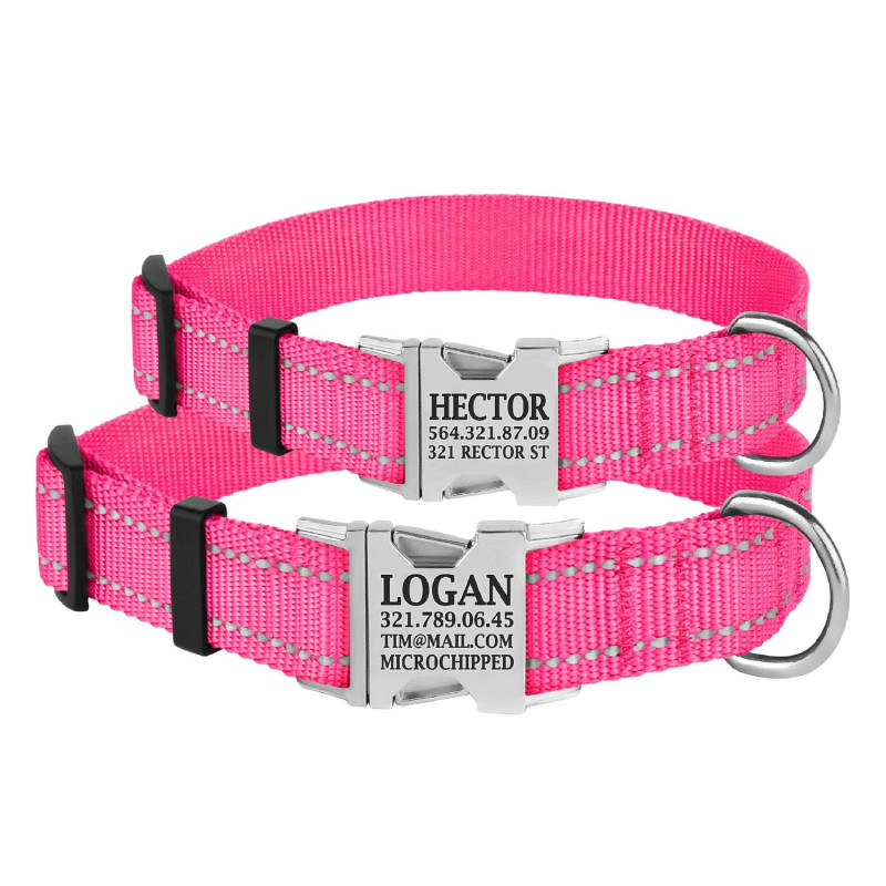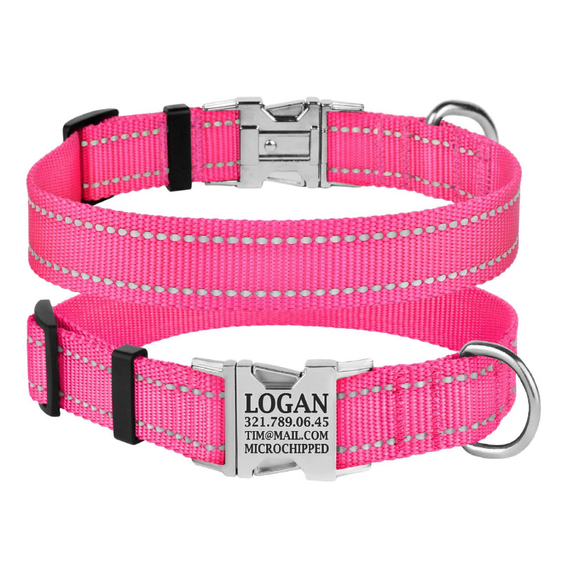 Нашийник для Собак BronzeDog Active Нейлоновий зі Світловідбиттям та Металевою Пряжкою Рожевий