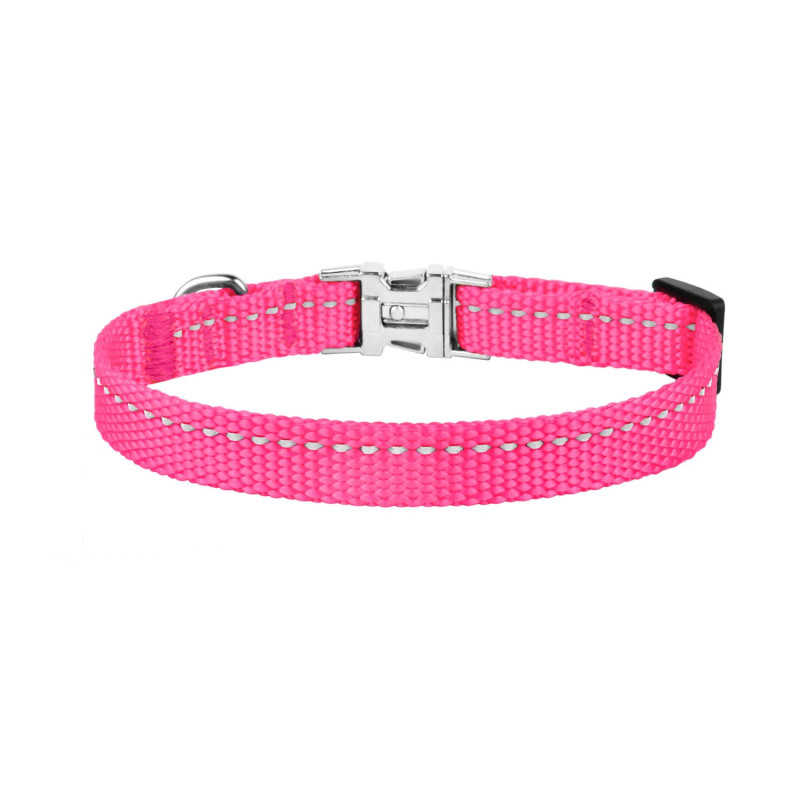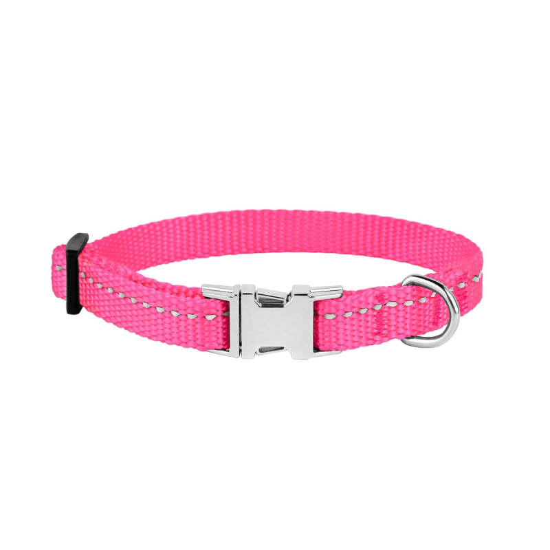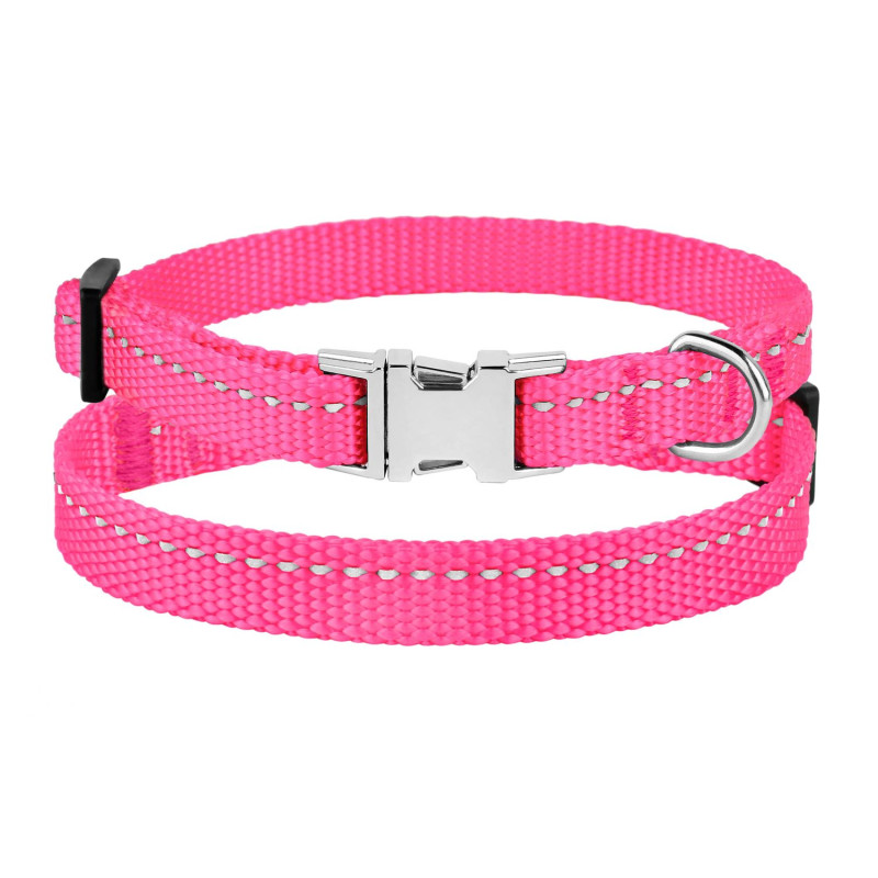 Нашийник для Собак Дрібних Порід BronzeDog Active Нейлоновий зі Світловідбиттям та Металевою Пряжкою Рожевий