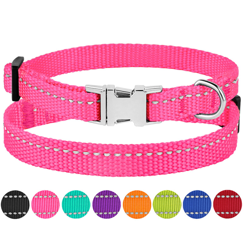 Нейлоновий нашийник зі світловідбиттям для собак дрібних порід ТМ BronzeDog легкий, міцний та надійний. Він виконаний із матеріалів найвищої якості. Високоміцний нейлон, з якого виготовлений нашийник, не втрачає колір при пранні та не вигоряє на сонці. Нашийник виконаний з вплетенням світловідбиваючої нитки та укомплектований міцною металевою пряжкою. Цей нашийник м'який на дотик, гнучкий, не боїться води, практичний і невибагливий у догляді.