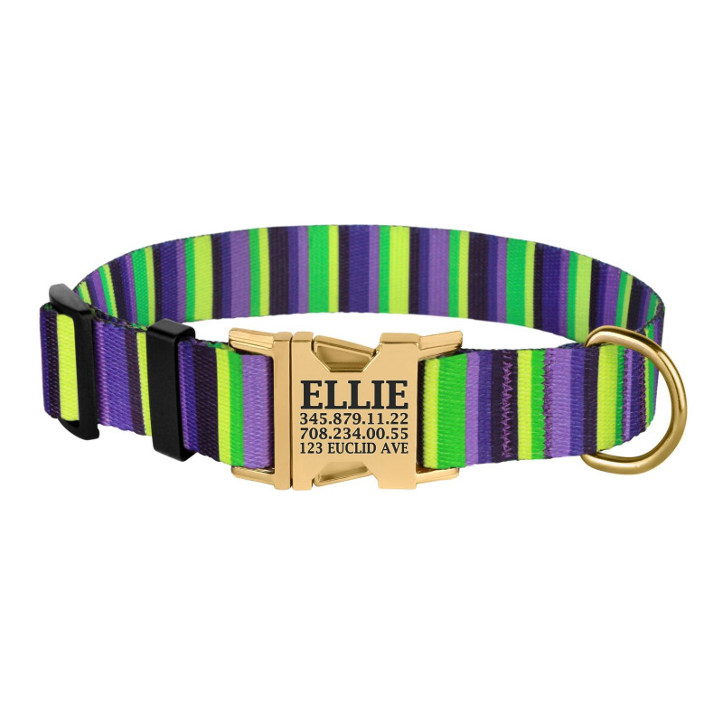 Нашийник для Собак BronzeDog Urban Полоска Нейлоновий з Металевою Пряжкою Фіолетово-Салатовий
