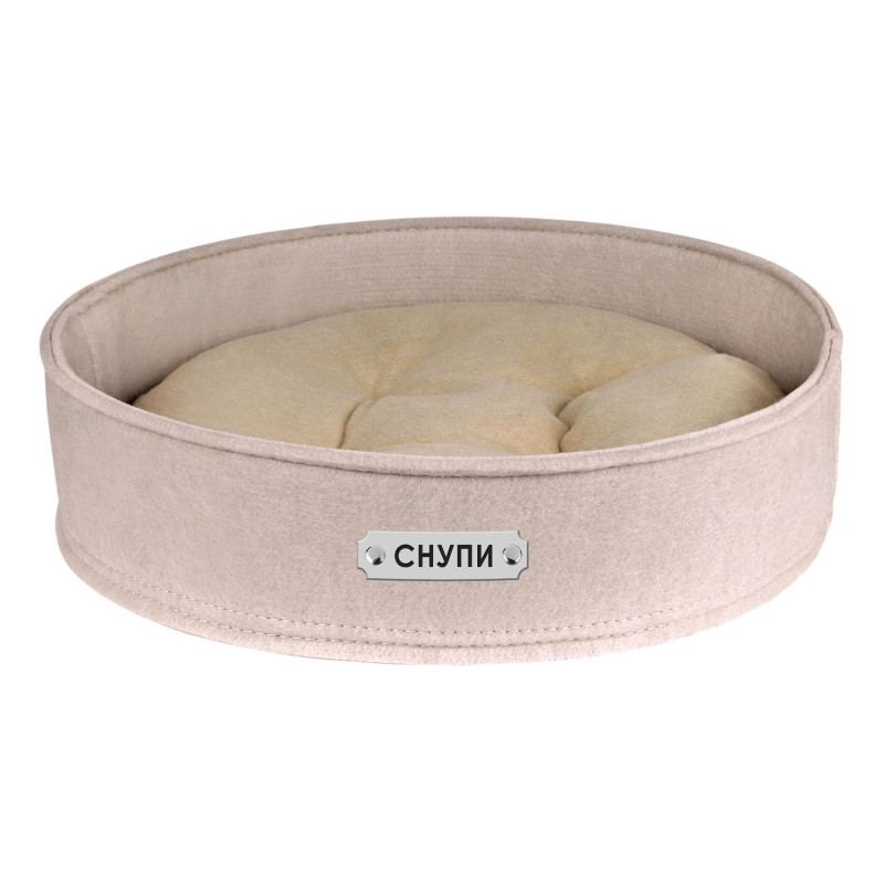 Ця лежанка для домашніх тварин виготовлена з високоякісної повсті. Усередині лежанки знімний килимок. Простий сучасний дизайн лежанки для домашніх тварин чудово виглядатиме в будь-якому інтер'єрі. Підходить для котів та маленьких собак. На лежанці за допомогою заклепок можна закріпити адресник, на якому наші майстри можуть нагрівати будь-яку інформацію за вашим бажанням, наприклад: ім'я домашньої тварини. Текст наноситься за допомогою лазера, тому з часом він не зітреться і не потьмяніє. Доступний у сірому, чорному та бежевому кольорах.