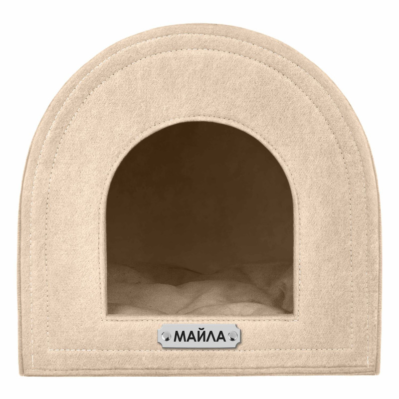 Цей будиночок для домашніх тварин виготовлений з високоякісної повсті. Усередині будиночка знімний килимок. Простий сучасний дизайн будиночка для домашніх тварин чудово виглядатиме в будь-якому інтер'єрі. Підходить для котів та маленьких собак. На будиночку за допомогою заклепок можна закріпити адресник, на якому наші майстри можуть нагрівати будь-яку інформацію за вашим бажанням, наприклад: ім'я домашньої тварини. Текст наноситься за допомогою лазера, тому з часом він не зітреться і не потьмяніє. Доступний у чорному, сірому та бежевому кольорах.