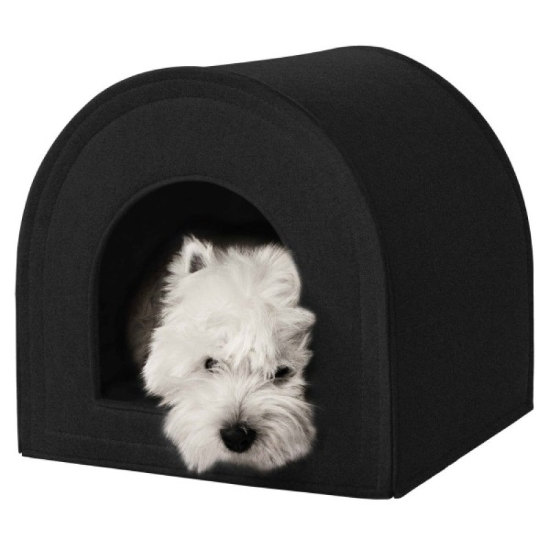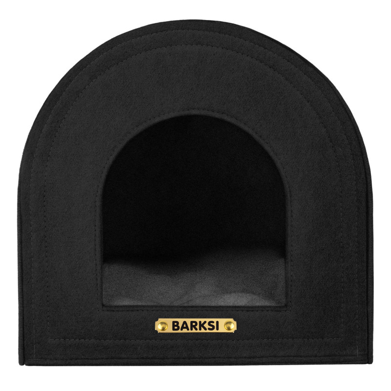 Цей будиночок для домашніх тварин виготовлений з високоякісної повсті. Усередині будиночка знімний килимок. Простий сучасний дизайн будиночка для домашніх тварин чудово виглядатиме в будь-якому інтер'єрі. Підходить для котів та маленьких собак. На будиночку за допомогою заклепок можна закріпити адресник, на якому наші майстри можуть нагрівати будь-яку інформацію за вашим бажанням, наприклад: ім'я домашньої тварини. Текст наноситься за допомогою лазера, тому з часом він не зітреться і не потьмяніє. Доступний у чорному, сірому та бежевому кольорах.