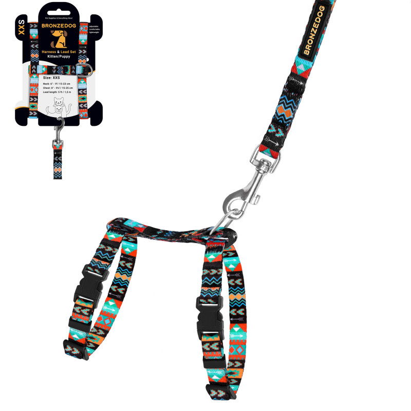 Шлея з Поводком для Котів та Дрібних Собак BronzeDog Urban Ацтеки