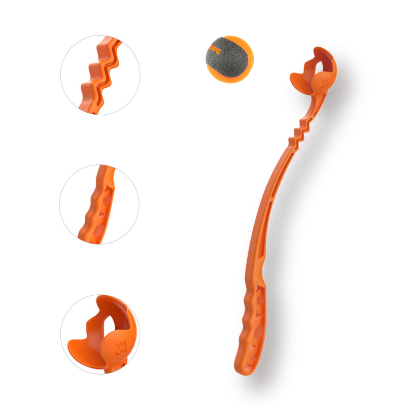 Часто граючи м'ячем із собакою на природі, не хочеться піднімати брудний та слинявий м'яч із землі. Тут на допомогу прийде унікальний атрибут для кидка м'ячів та підбору їх із землі Skipdawg Лаунчер. Лаунчер є відмінним способом навчити собаку апортування, не піддаючи себе втоми. Лаунчер виготовлений із міцного полегшеного гнучкого пластику. Ергономічна ручка забезпечує максимальний комфорт та контроль під час кидка м'ячів. Унікальна форма "Зигзаг" допомагає збільшити дальність кидка. Цей лаунчер дозволяє використовувати сумісні з лаунчером м'ячі 6,5 см і менше.