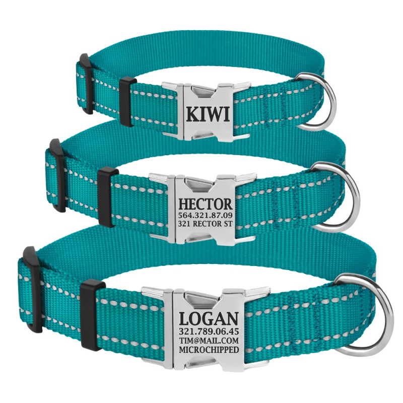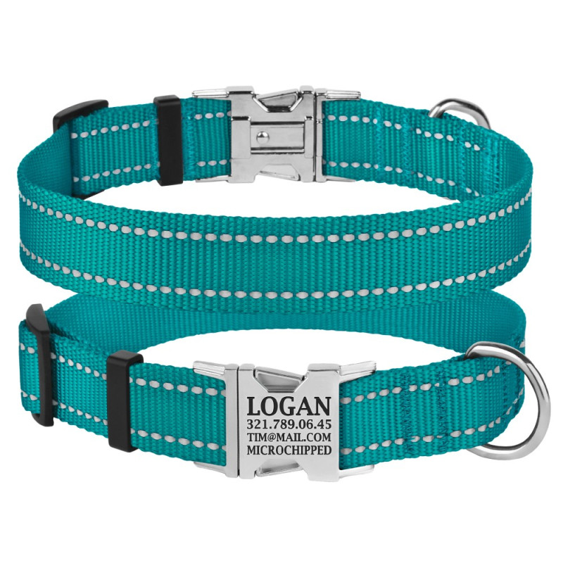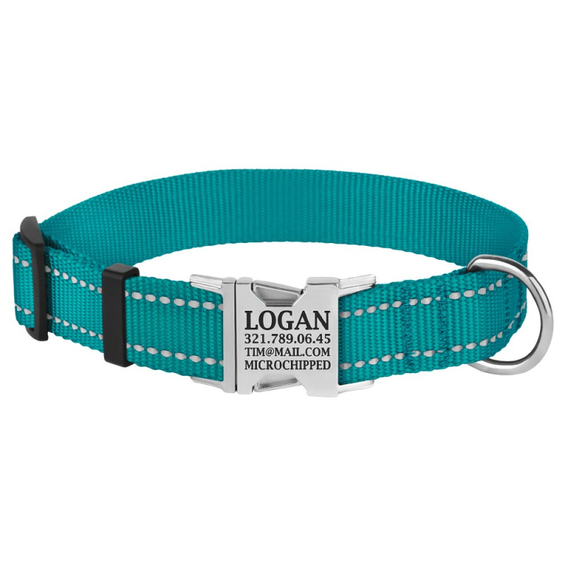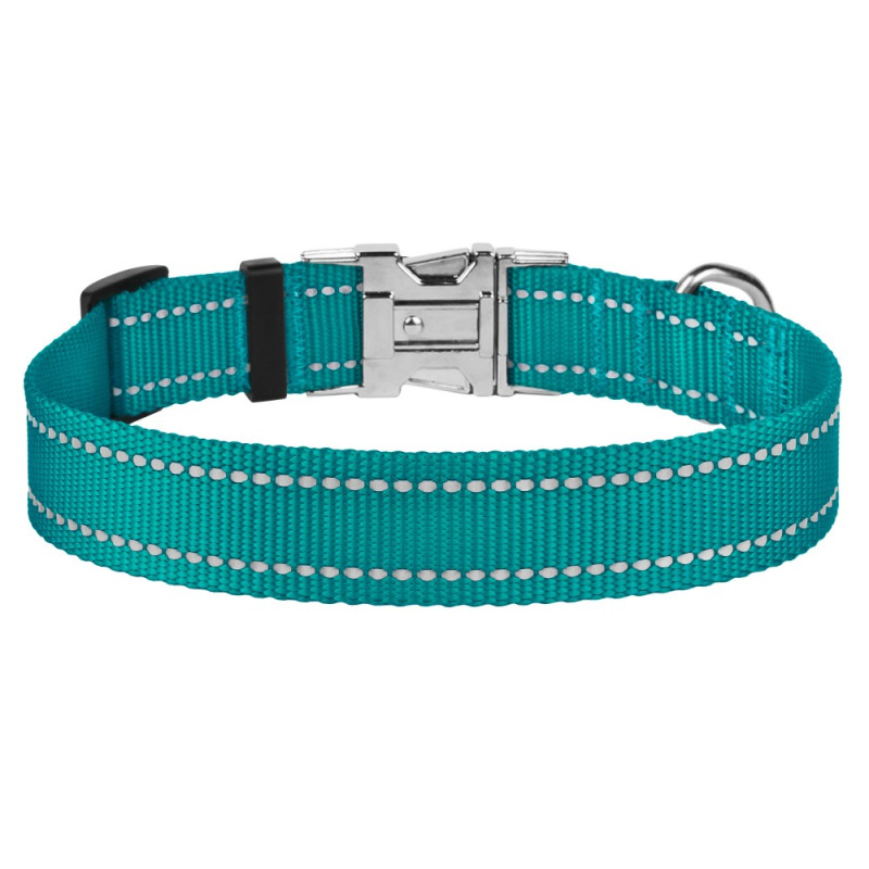 Нашийник для Собак BronzeDog Active Нейлоновий зі Світловідбиттям та Металевою Пряжкою Бірюзовий