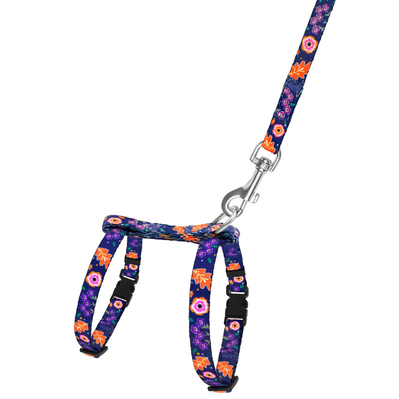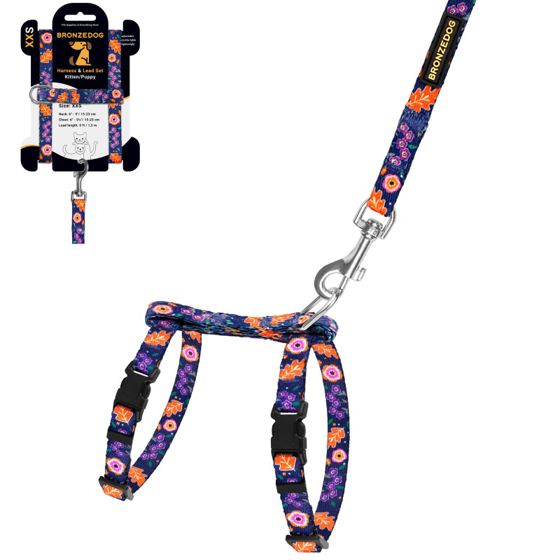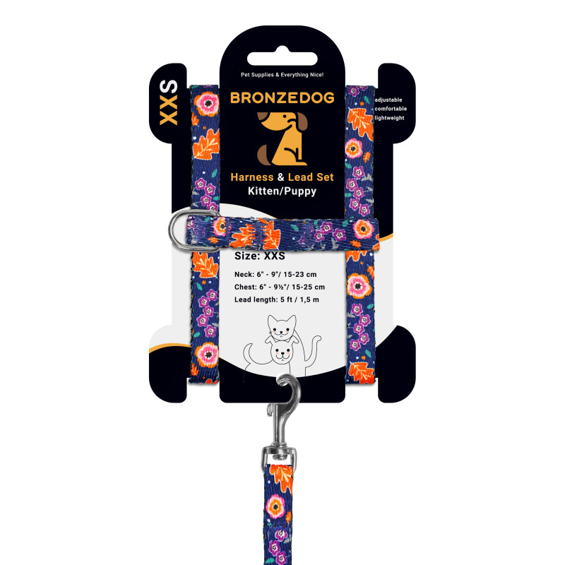 Шлея з Поводком для Котів та Дрібних Собак BronzeDog Urban Квіти Синя