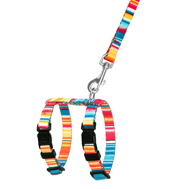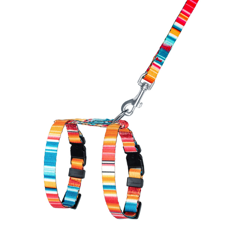 Шлея укомплектована високоякісною пластиковою пряжкою. Обхват регулюється. Розроблений для собак дрібних порід (чихуахуа, карликовий пінчер, йоркширський тер'єр, той тер'єр, кокер спанієль, мопс, шпіц, пекінес, такса тощо) та котів. Ця шлейка і повідець м'які на дотик, гнучкі і не бояться води. Вони практичні та невибагливі у догляді.