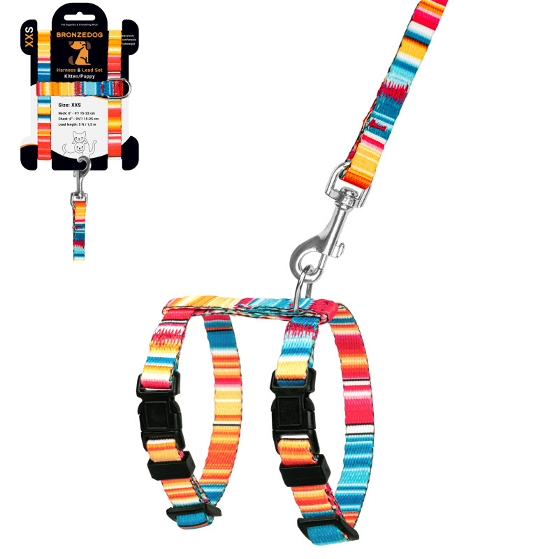 Нейлонова шлейка з повідцем для котів та собак дрібних порід ТМ BronzeDog легка, міцна та надійна. Вона виконана з матеріалів найвищої якості. Довжина повідця 1,52 м. Високоміцний нейлон, з якого виготовлена шлейка, не втрачає колір при пранні та не вигоряє на сонці.