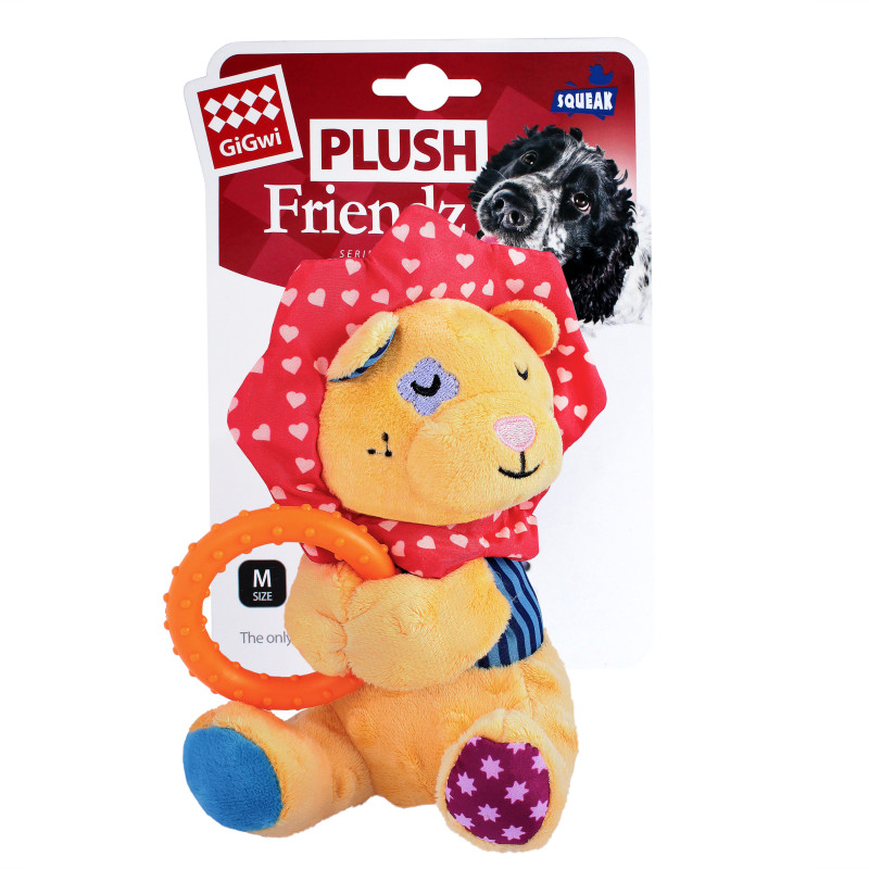 Іграшка для Собак Gigwi Plush Friendz Лев з пищалкою та кільцем