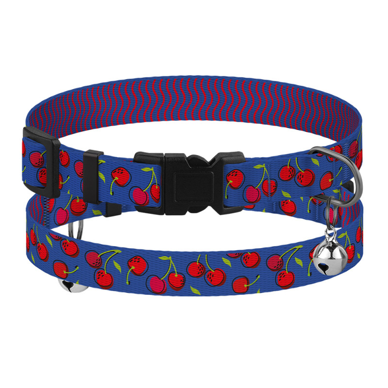 Нашийник для Котів BronzeDog Urban Fruits Нейлоновий з Пластиковою Пряжкою та Дзвіночком Вишні