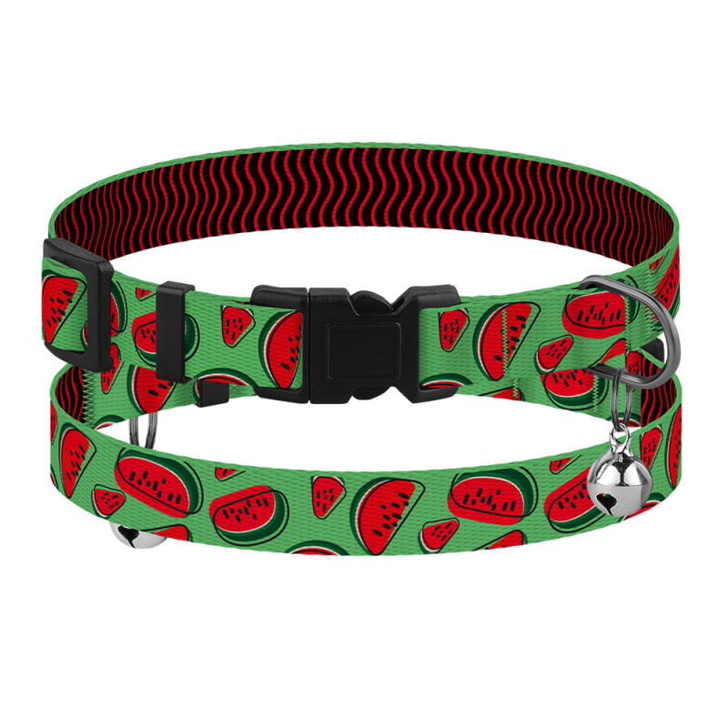 Нашийник для Котів BronzeDog Urban Fruits Нейлоновий з Пластиковою Пряжкою та Дзвіночком Кавун