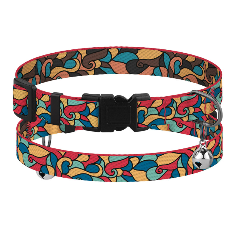 Нашийник для Котів BronzeDog Urban Art Нейлоновий з Пластиковою Пряжкою та Дзвіночком Вітраж