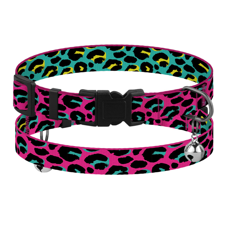 Нашийник для Котів BronzeDog Urban Art Нейлоновий з Пластиковою Пряжкою та Дзвіночком Леопард
