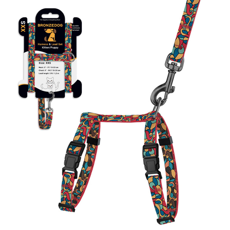 Шлея з Поводком для Котів та Дрібних Собак BronzeDog Urban Art Вітраж