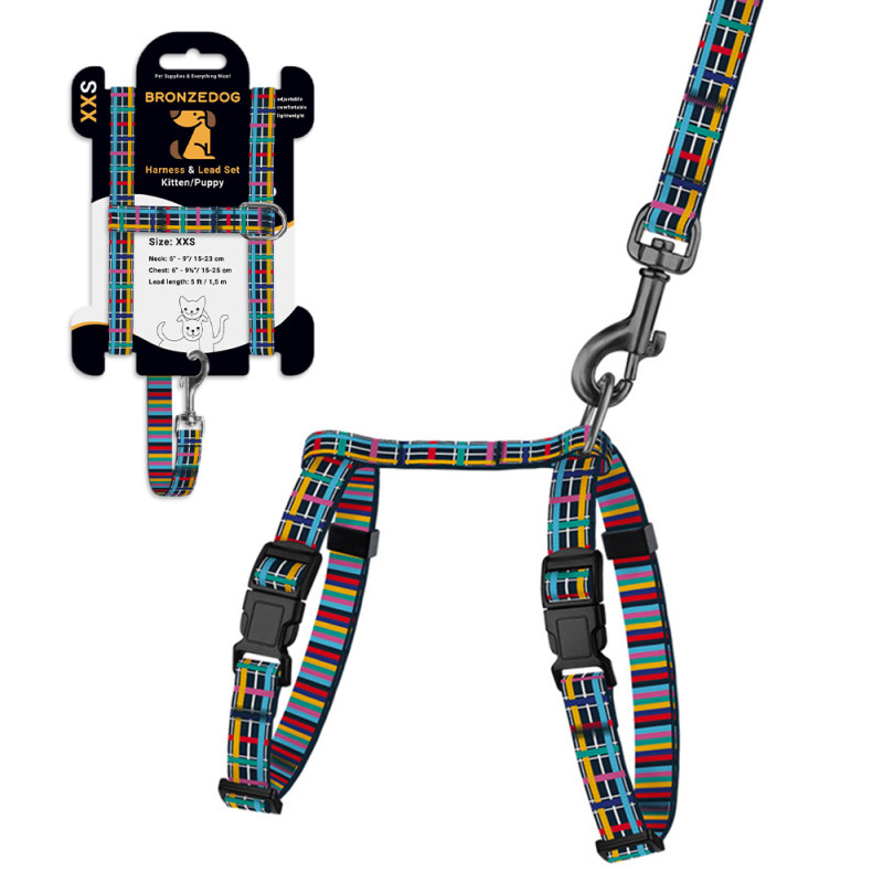 Шлея з Поводком для Котів та Дрібних Собак BronzeDog Urban Art Клітинка