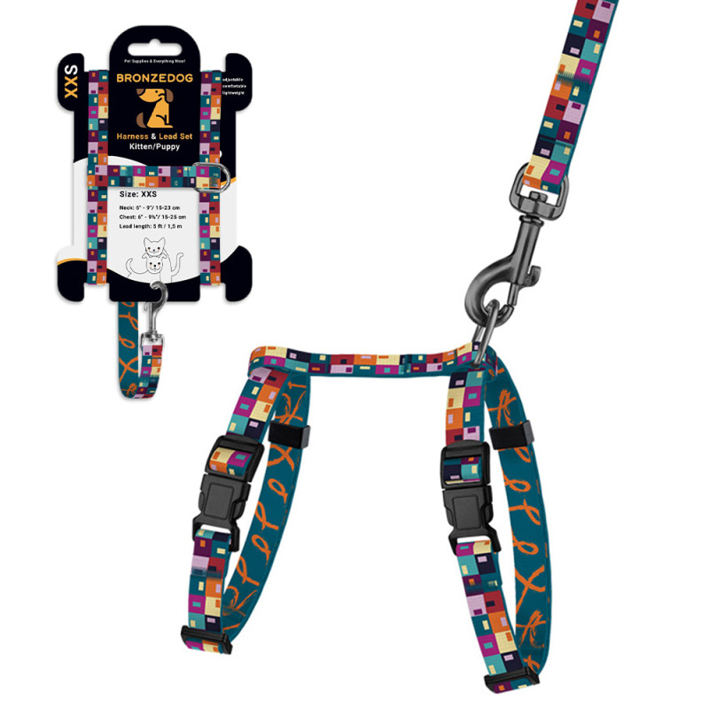 Шлея з Поводком для Котів та Дрібних Собак BronzeDog Urban Art Печворк