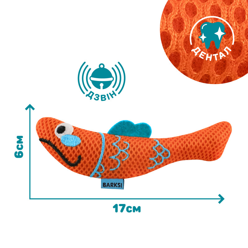 Іграшка для Котів Barksi дентал з дзвіночком Риба Помаранчева
