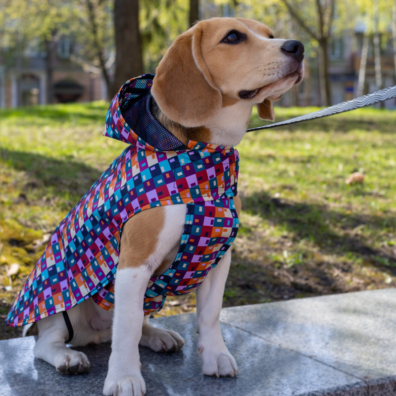 Дощовик для собак Barksi Textile з капюшоном Печворк