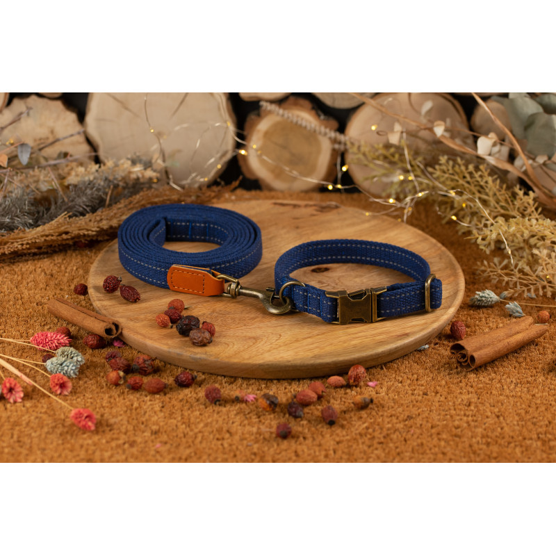 Повідець для собак BronzeDog Брезент з карабіном Antiq Синій