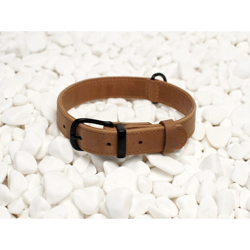 Цей стильний класичний нашийник ручної роботи виготовлений із м'якої натуральної шкіри. Цей нашийник ідеальний зносостійкий та міцний аксесуар з м'якою, гладенькою текстурою. Вони не розтягуються та не облущуються, не тягнуть за шерсть й не натирають шию. Поєднання високоякісної шкіри та міцної металевої фурнітури – запорука тривалої служби нашийника. Його можна використовувати як вдома, так і на вулиці під час прогулянок. Металеве напівкільце служить надійним кріпленням для повідця. Підходить для будь-яких пород собак.