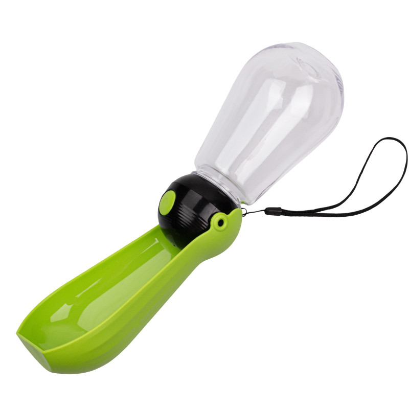 Ця пластикова портативна поїлка для собак дуже зручна у використанні. Завдяки нейлоновому шнурку в комплекті та зручній кнопці подачі води, її дуже легко носити з собою та користуватись однією рукою. Така поїлка вміщує 400 мл води, чудово захищена від протікання та має довгу чашу, для полегшення пиття. Щоб заощадити місце, чашу можна скласти. Вона ідеально підходить під час поїздок або тривалих прогулянок. Для забезпечення вашого улюбленця питною водою просто натисніть кнопку та налийте в чашу води. Поїлка виготовлена з високоякісного пластику, тому має легку вагу та міцний корпус. Даний матеріал абсолютно безпечний для собак, не містить шкідливих речовин, а також легко миється і тримається в чистоті.