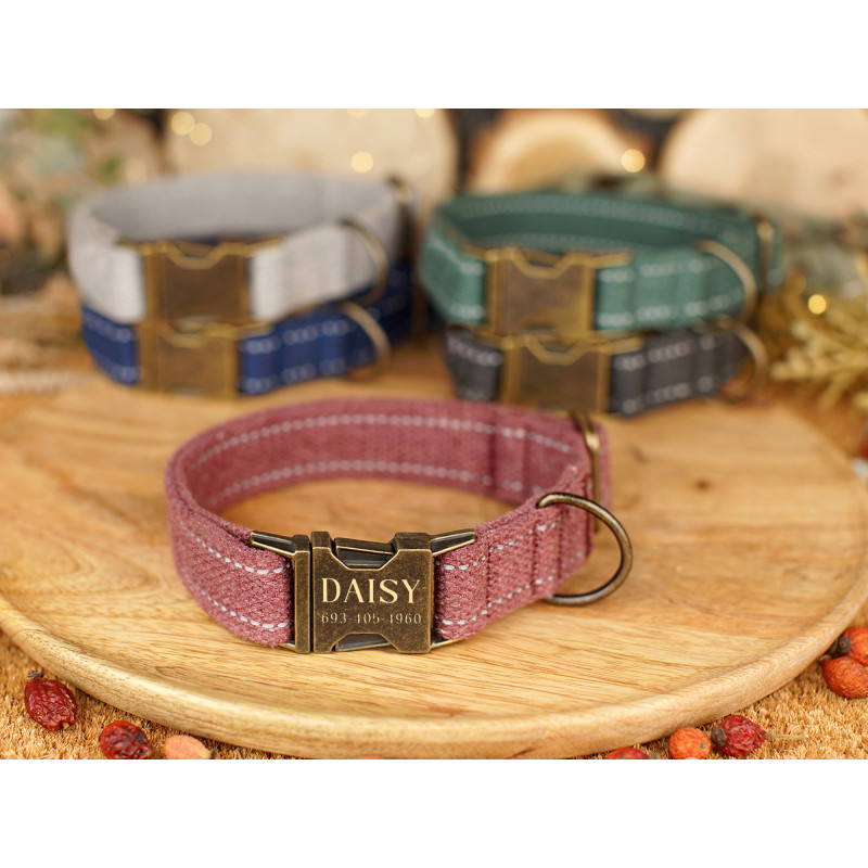 Світловідбиваючий нашийник для собак Bronzedog Cotton дуже міцний, надійний та безпечний. Виготовлений з натурального матеріалу бавовняної сировини найвищої якості, що робить його м'яким і приємним на дотик. Високоміцна бавовняна стрічка не втрачає колір при пранні і не вигоряє на сонці. Він ідеально підходить для повсякденного використання та прогулянок у парку. Світловідбиваючі елементи допомагають убезпечити ваші прогулянки ввечері та вночі. Такі стрічки додають вашому вихованцю помітності для господаря та водіїв у темний час доби. Нашийник укомплектований міцною металевою пряжкою з можливістю нанесення гравіювання. На пряжці можна награвіювати будь-яку інформацію, наприклад: кличка домашньої тварини, контактні дані, адреса, номер мікрочіпа тощо. Текст наноситься за допомогою лазера, тому з часом він не стирається і не тьмяніє.