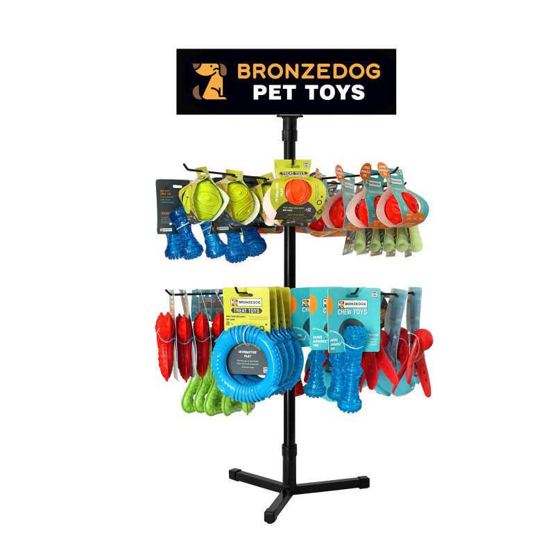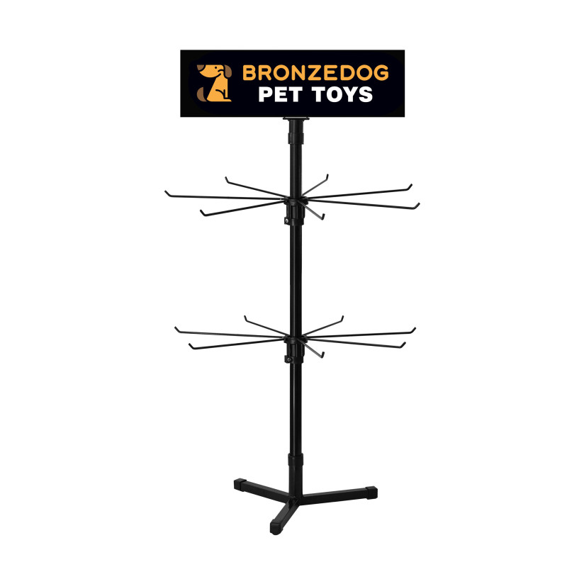 Стенди для іграшки – це нова пропозиція від BronzeDog. Він виконаний із металу, оснащений фірмовим логотипом. У цьому стенді можна регулювати висоту кріплення дисплеїв із гачками. Стенд надається безкоштовно за замовленням іграшки Bronzedog в асортименті від 3000,00 грн. Усі дисплеї знімні, у комплекті зі стендом йде 2 шт. Стенд легкий, надійний та стійкий. Розмір стенду: ширина – 55 см, висота – 104 см. Доступний у чорному кольорі.