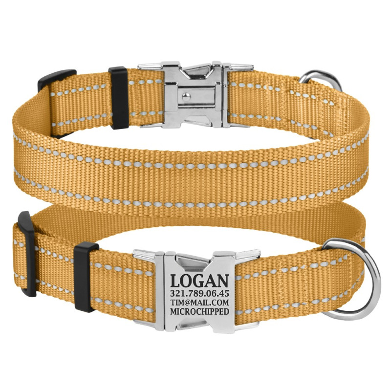 Нейлоновий нашийник зі світловідбиттям для собак ТМ BronzeDog легкий, міцний та надійний. Він виконаний із матеріалів найвищої якості. Високоміцний нейлон, з якого виготовлений нашийник, не втрачає колір під час прання і не вигоряє на сонці. Нашийник виконаний із вплетенням світловідбиваючої нитки та укомплектований міцною металевою пряжкою з можливістю нанесення гравіювання. На пряжці можна нагрівати будь-яку інформацію, наприклад: кличка домашньої тварини, контактні дані, адреса, номер мікрочіпа тощо. На нашийнику розміру S бажано розміщувати не більше 2 рядків гравіювання. Текст наноситься за допомогою лазера, тому з часом він не стирається і не тьмяніє. Цей нашийник м'який на дотик, гнучкий, не боїться води, практичний і невибагливий у догляді.
